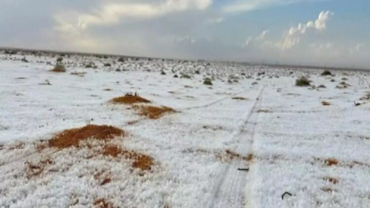 Dubai, Nov 5: In a stunning change of events, torrential rain and snowfall are occurring for the first time in history in some parts of Saudi Arabia. According to accounts, the Al-Jawf region recently received a lot of snow, turning a country that is usually known for its arid climate into a winter wonderland. This record-breaking snowfall comes after a string of intense downpours and hailstorms hit the region.