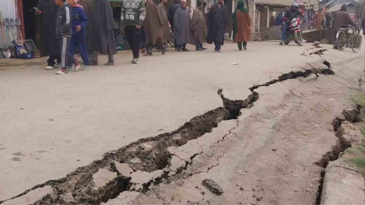 Bandipora, Feb 25: Massive cracks appeared on a road along the river Jhelum in Hajin town of north Kashmir’s Bandipora district on Tuesday, creating panic among locals.