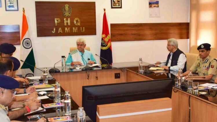 Jammu, June 10: Lieutenant Governor Manoj Sinha today chaired a high-level security review meeting with the officials of J&K Police and Civil Administration, at Police Headquarters, Jammu.