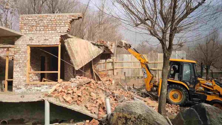 Ganderbal, Jan 03: On the directions of Deputy Commissioner Ganderbal, a massive demolition drive was conducted today against illegal constructions at Margund, Satrina and Doctors Colony Plang during which various structures were razed to ground.