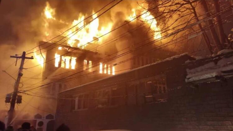 Massive Fire Destroys House, Eight Shops in Bandipora