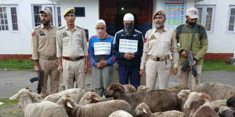 Shopian, Aug 29: Jammu and Kashmir Police have busted a sheep theft gang, arrested two accused and recovered 51 stolen sheep in South Kashmir’s Shopian district.